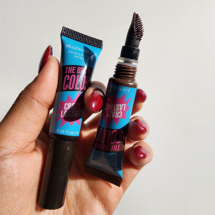 رنگ ابروی Billion Beauty با آمونیاک بسیار کم و حاوی روغن بادام تلخ، علاوه بر پوشش ۱۰۰ درصدی موهای سفید، باعث تقویت ریشه و ساقه ابرو میشود. این محصول دوام بسیار بالایی دارد.