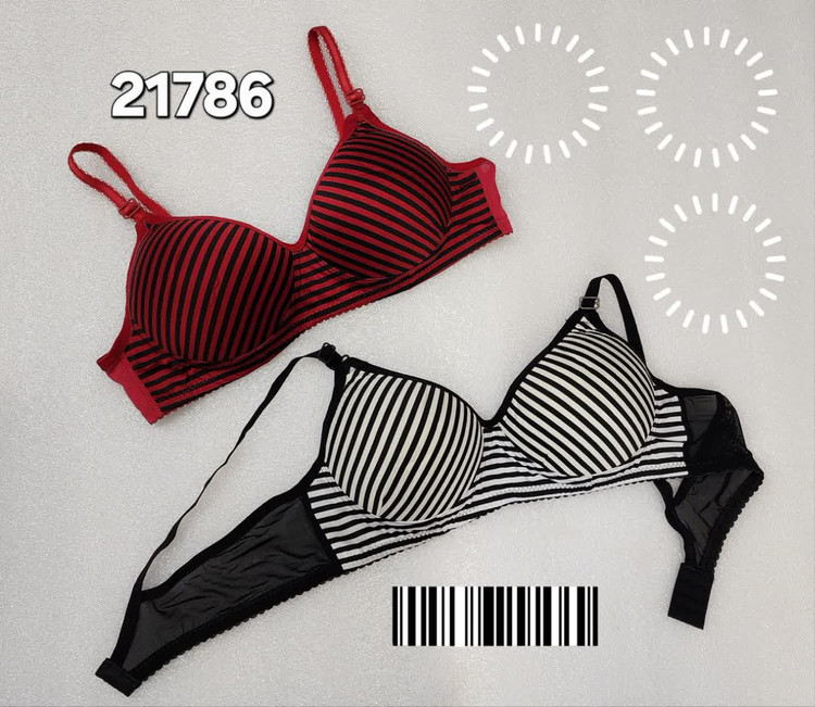 سوتین اسفنجی بدون فنر سایز بندی از 70 تا 85کاپ استاندارد بدون فنر راه راه زرشکی